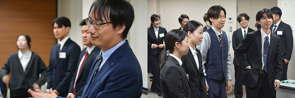専務からは、「学生は“お金を払って学ぶ”。社会人は“お金をいただきながら学べる”。この違いを意識して、積極的に挑戦してほしい」というメッセージが伝えられ、働くことの本質やプロ意識について、内定者が考える時間となりました。