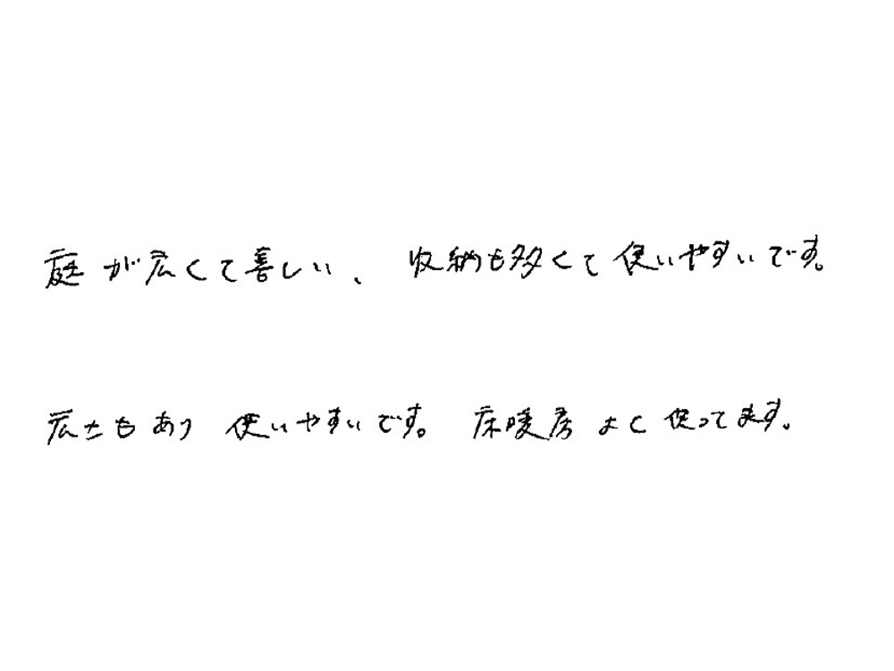 庭が広くて嬉しい。収納も多くて使いやすいです。