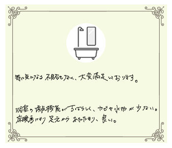 浴室の換気機能がすばらしく、カビや水アカが少ない。