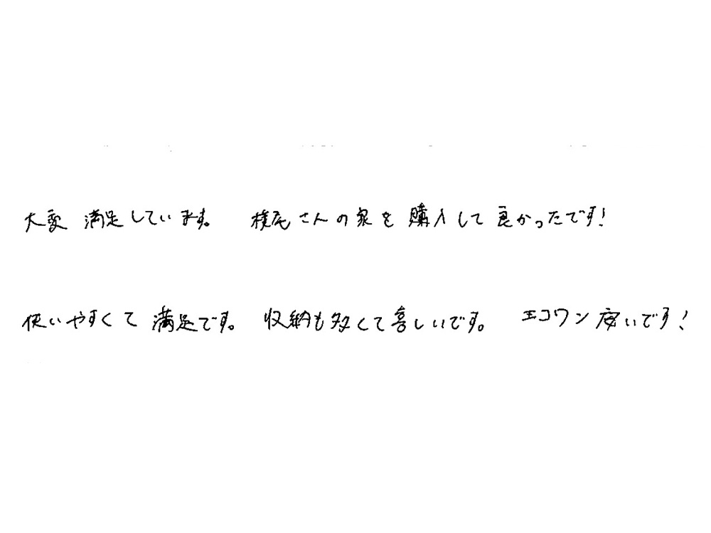 (設備について)使いやすくて満足です。収納も多くて嬉しいです。エコワン安いです!